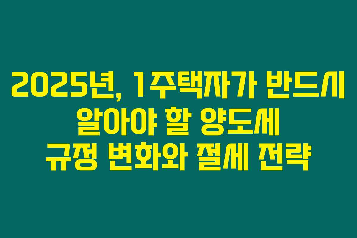제가 직접 알아본 바로는, 2025년부터 적용되는 양도세 규정이 1주택자에게도 큰 영향을 미칠 것으로 보입니다. “하나만 가지고 있으면 안전할 거야”라는 안일한 생각은 이제 버리는 것이 좋을 것 같은데요. 이제는 더욱 강화된 세무 조사가 진행되며, 1주택자라도 세금 부담을 피하기 위해 주의해야 할 점들이 많아졌습니다. 이에 대한 내용을 아래를 읽어보시면 더 자세히 알 수 있습니다.