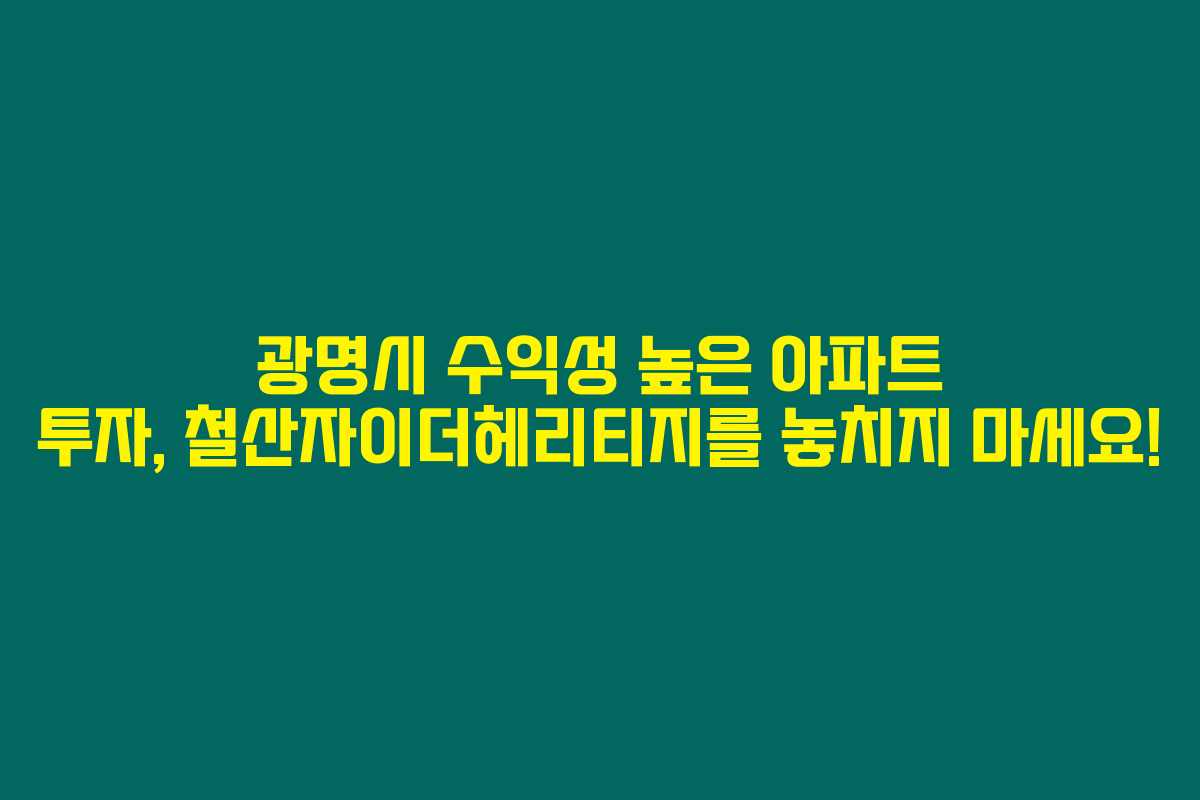 광명시 수익성 높은 아파트 투자, 철산자이더헤리티지를 놓치지 마세요!