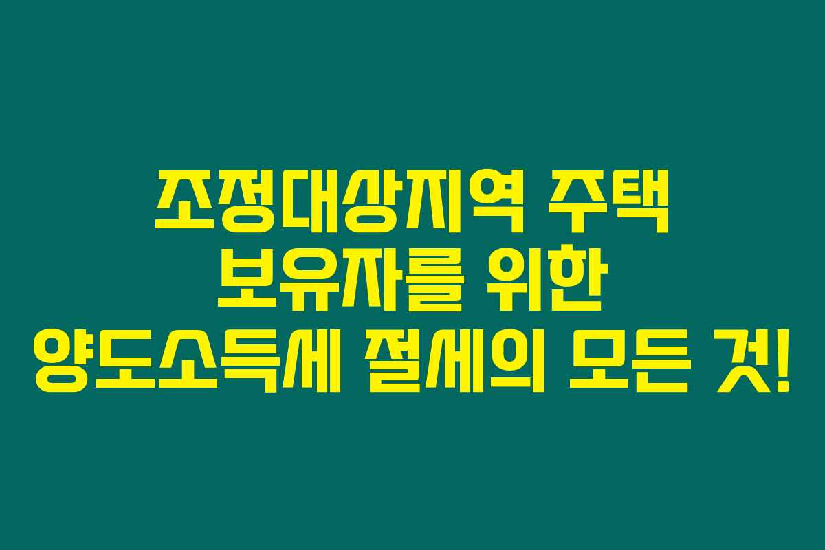 제가 직접 경험해본 결과로는, 조정대상지역에서 주택을 보유한 분들에게는 양도소득세 절세란 매우 중요한 이슈입니다. 다주택자뿐만 아니라 단일 주택 보유자에게도 해당되며, 잘 알지 못하는 경우 세금을 불필요하게 납부하게 될 수 있습니다. 아래를 읽어보시면 절세의 기회와 함께 유용한 정보를 제공할게요.