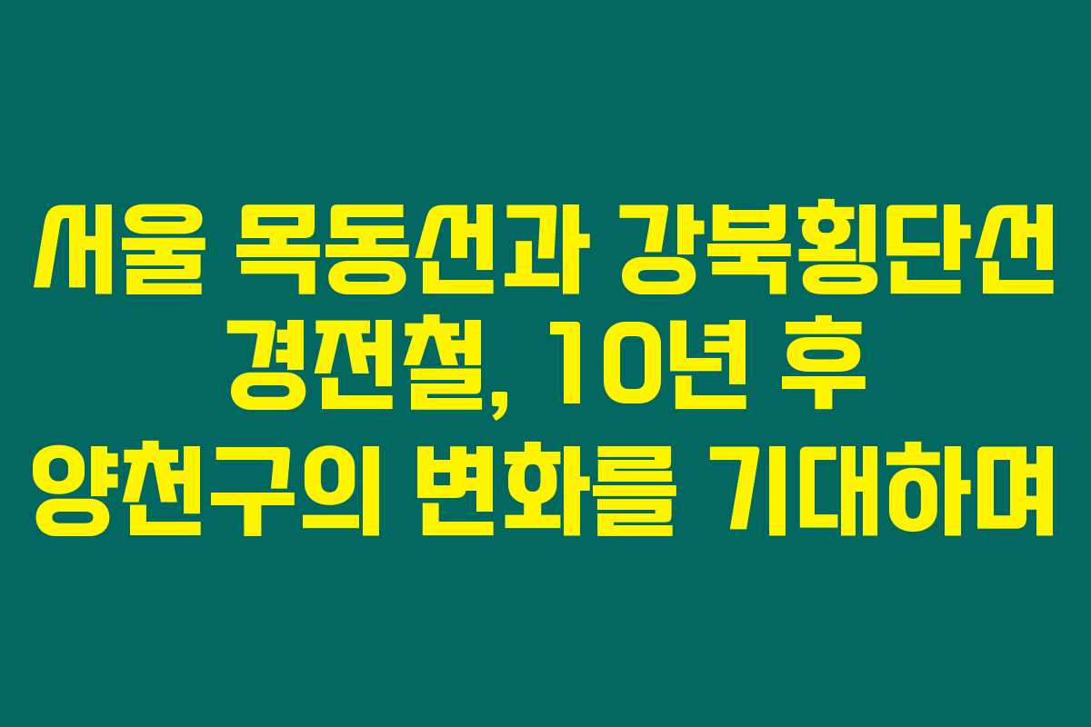 10년 후의 양천구 모습이 기대되고, 그 과정에서 목동선과 강북횡단선이 중요한 역할을 할 것입니다. 이로 인해 교통뿐만 아니라 부동산 시장도 활성화될 것이니, 많은 관심이 필요하답니다.