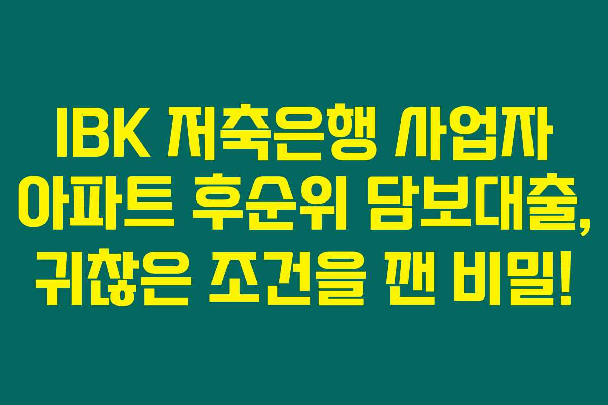 제가 경험해본 결과, IBK 저축은행 사업자 아파트 후순위 담보대출은 대출 심사가 유리한 조건이 많고, 실용성 있는 대출 옵션이라 할 수 있습니다. 개인사업자 분들께 꼭 필요한 자금 조달의 수단이 될 것입니다. 아파트 담보를 통해 자금을 확보하고, 사업 운영의 안정성을 높여보세요.