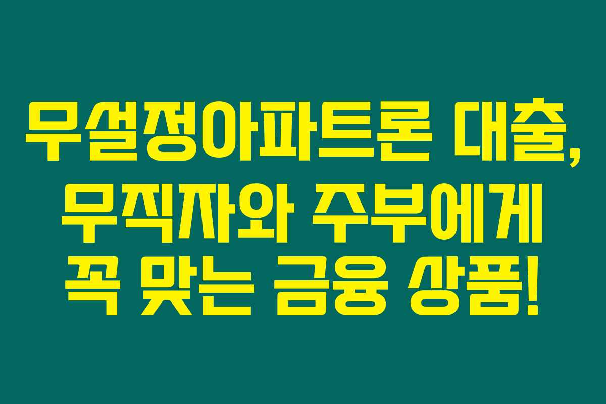 제가 직접 조사한 바로는, 무직자와 주부는 소득증빙이 어렵기 때문에 일반적인 신용대출 상품이 아닌, 무설정아파트론 같은 상품을 통해 대출을 받는 것이 더욱 유리해요. 이런 상품은 자산을 소득으로 인정해 주기 때문에, 안정적인 금융 지원을 제공합니다.