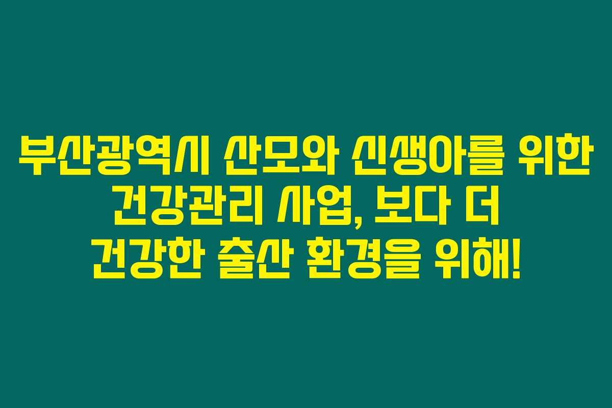 제가 직접 확인해본 결과, 부산광역시에서 운영하는 산모·신생아 건강관리 지원사업은 임산부와 신생아의 건강한 발달을 위한 다양한 프로그램으로 구성되어 있습니다. 이 지원사업은 출산과 육아에 대한 가족의 부담을 덜어주며, 행복한 임신과 출산 환경을 조성하기 위해 마련되었습니다. 아래를 읽어보시면 이 사업이 어떻게 다양한 지원을 제공하는지에 대한 자세한 정보를 알 수 있습니다.