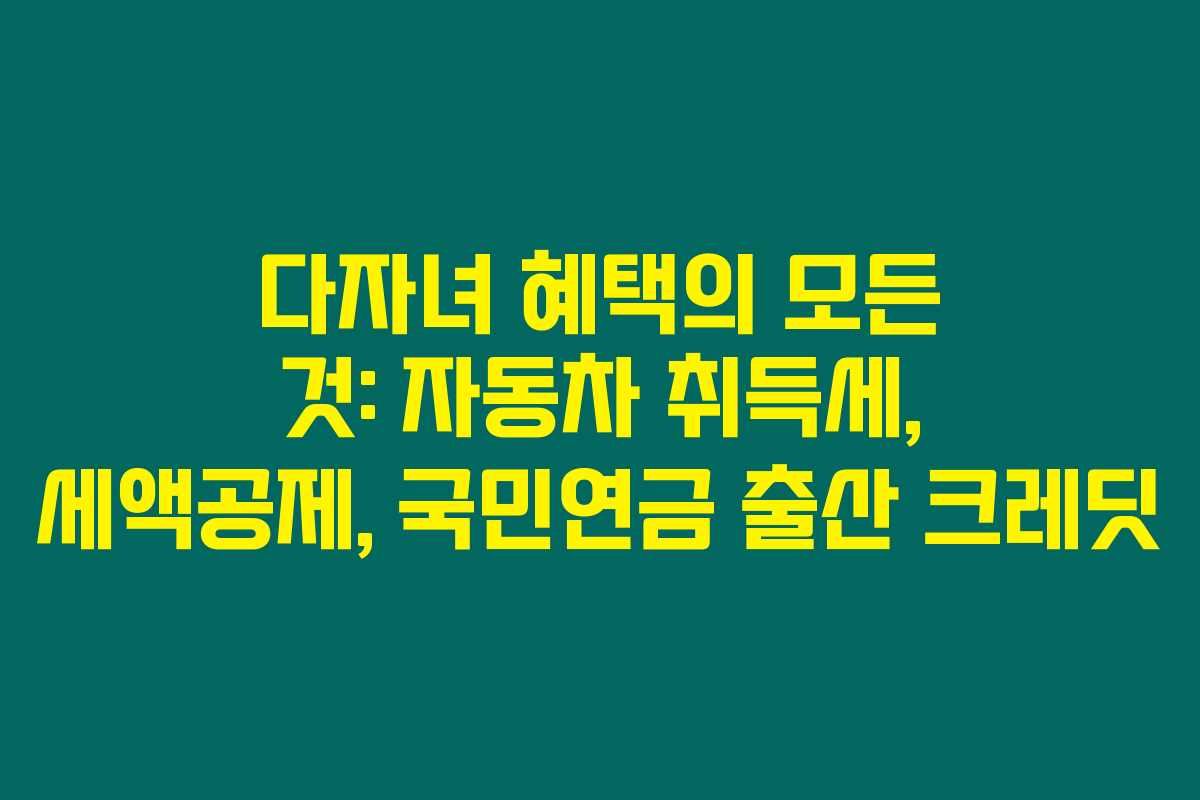 제가 직접 체크해본 바로는 다자녀 가구를 위한 다양한 혜택들이 실제로 많은 가족들에게 큰 도움이 되고 있어요. 특히 자동차 취득세 감면, 세액공제, 국민연금 출산 크레딧 제도는 다자녀 가구의 경제적 부담을 덜어주는 중요한 정책이라고 할 수 있습니다. 아래를 읽어보시면 이 제도들에 대해 자세하게 알아보실 수 있을 거예요.