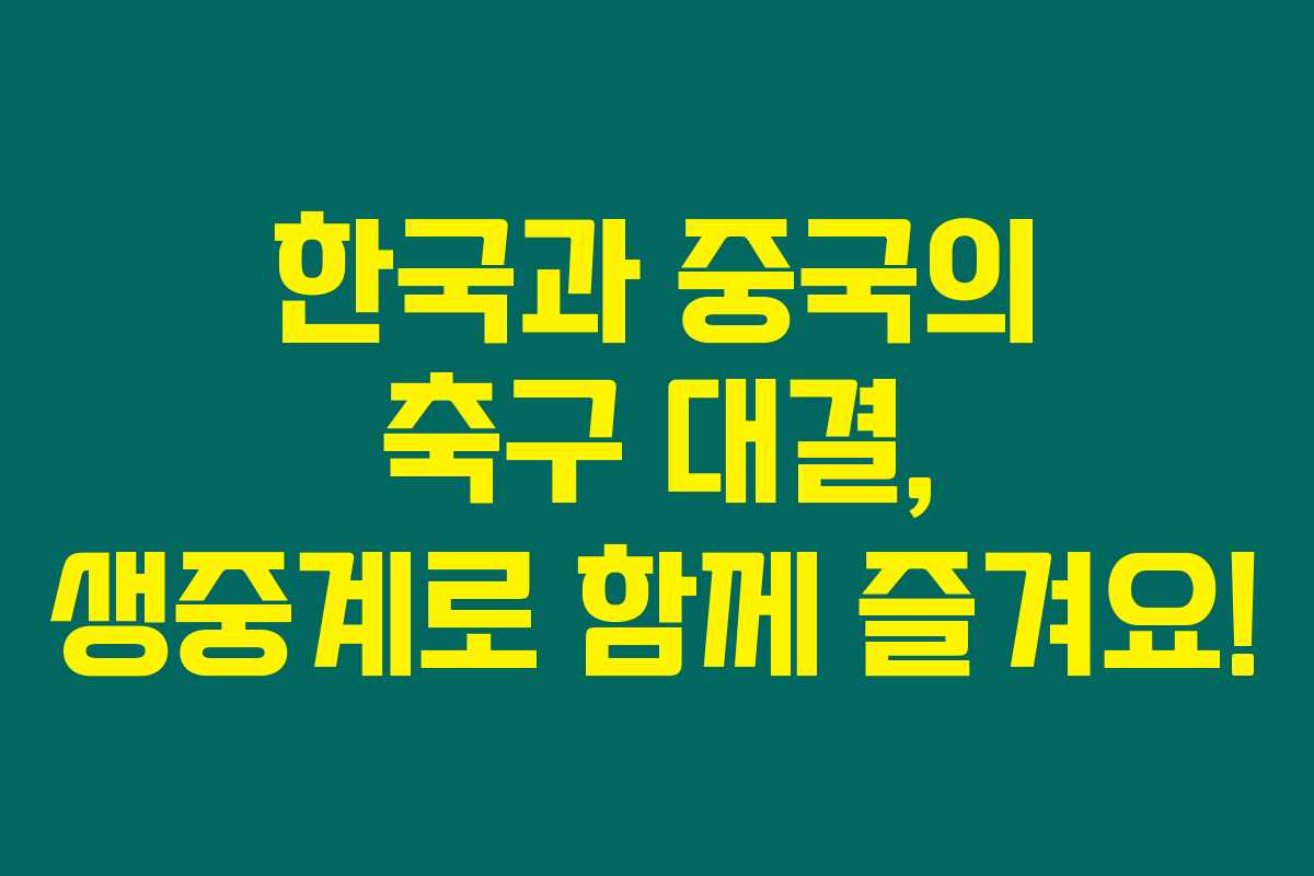 이번 한국과 중국의 축구 경기, 많은 분들이 생중계로 즐기실 수 있도록 미리 준비하시고 기다려주세요. 축구 팬들의 응원이 선수들에게 큰 힘이 될 것이니, 많은 관심 부탁드려요!
