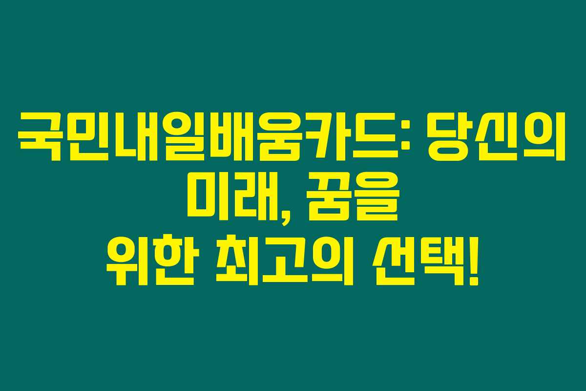 국민내일배움카드를 활용하여 새로운 도전을 시작해 보세요. 여러분의 꿈이 실현될 날이 가까워질 것입니다.