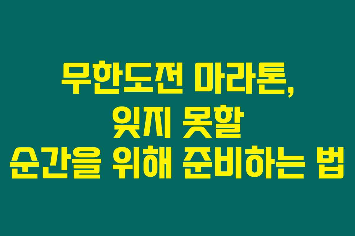 무한도전 마라톤, 잊지 못할 순간을 위해 준비하는 법