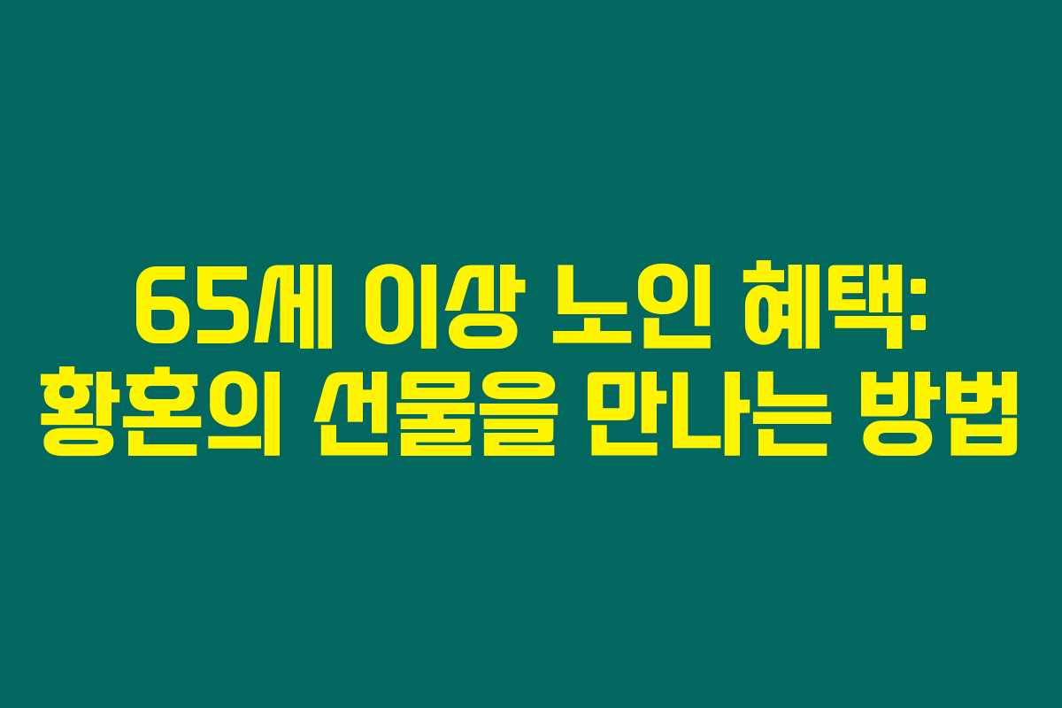 제가 직접 경험해본 결과로는, 65세 이상 노인분들이 누릴 수 있는 다양한 혜택을 통해 삶의 질이 개선될 수 있다는 점을 알게 되었어요. 노화로 인해 경제적 어려움을 겪는 경우가 많지만, 정부에서 제공하는 여러 가지 지원제도를 잘 활용하면 도움이 많이 될 수 있답니다. 아래를 읽어보시면 노인분들이 쉽게 접근할 수 있는 황혼의 선물 같은 혜택에 대해 알아볼 수 있어요.