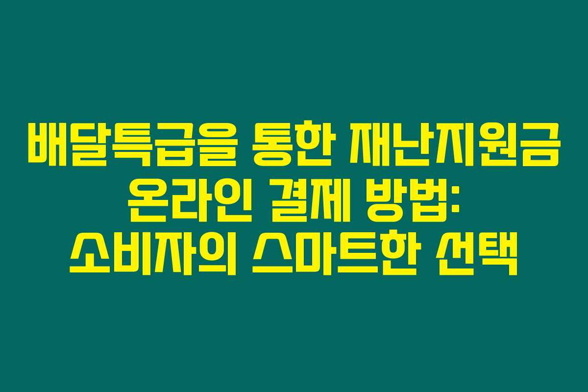 배달특급을 통한 재난지원금 온라인 결제 방법: 소비자의 스마트한 선택