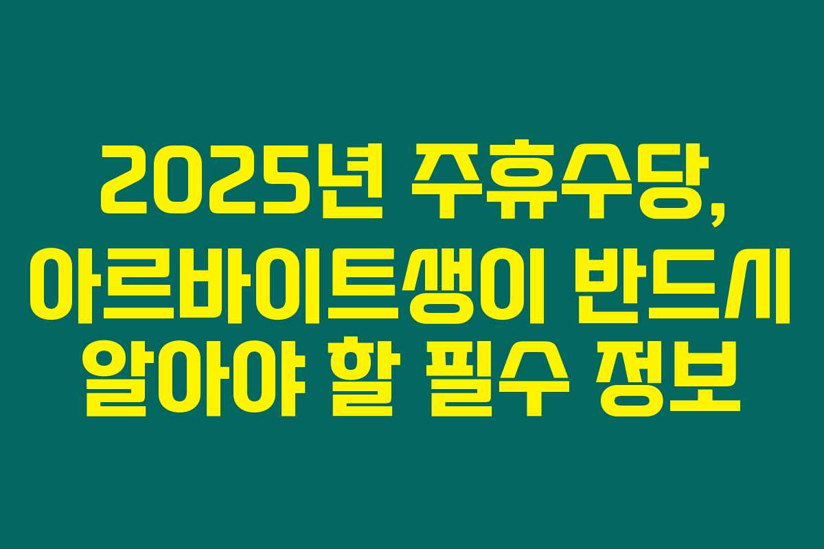 디스크립션은 텍스트로만 구성해줘. 주휴수당이란 무엇인지, 아르바이트생들이 꼭 알아야 할 지급 조건과 계산 방법을 자세히 설명드립니다. 제가 직접 확인해본 결과, 이 모든 사항이 여러분의 권리를 지키는데 중요하다는 것을 많은 분들이 알고 계셔야 할 것 같아요.