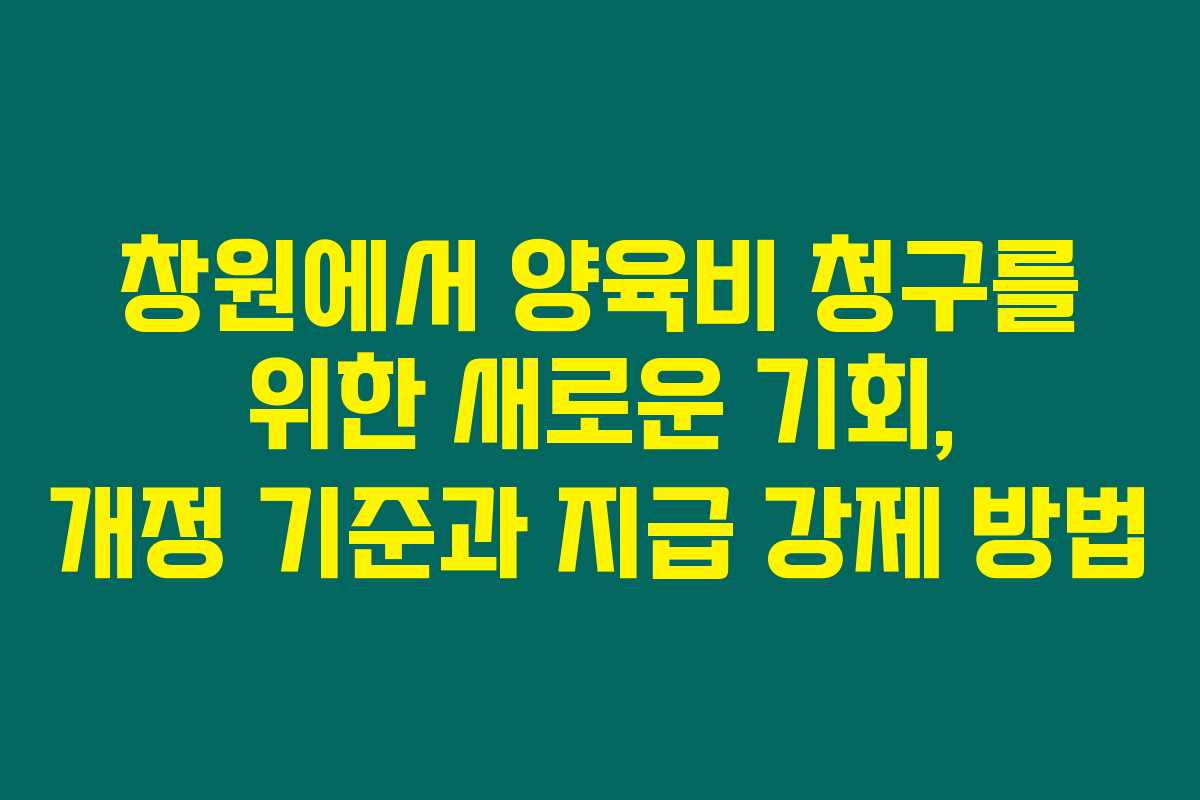 제가 직접 체크해본 바로는, 창원에서 양육비 청구를 진행하는 것은 많은 이들에게 중요한 이슈입니다. 특히 최근 개정된 양육비 산정기준과 양육비 지급을 강제로 할 수 있는 방법이 주목받고 있지요. 아래를 읽어보시면, 이러한 정보들에 대해 더 자세히 알 수 있을 것입니다.