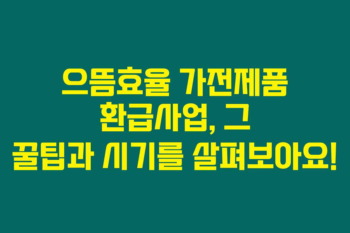 제가 알아본 바로는, 으뜸효율 가전제품 구매비용 환급사업은 고효율 가전제품의 구매를 촉진하기 위한 제도입니다. 이 사업은 소비자들에게 고효율 제품을 구매하라는 의미에서 시작되었으며, 동시에 제조기업에게도 고효율 제품 생산을 유도하는 인센티브 역할을 합니다.