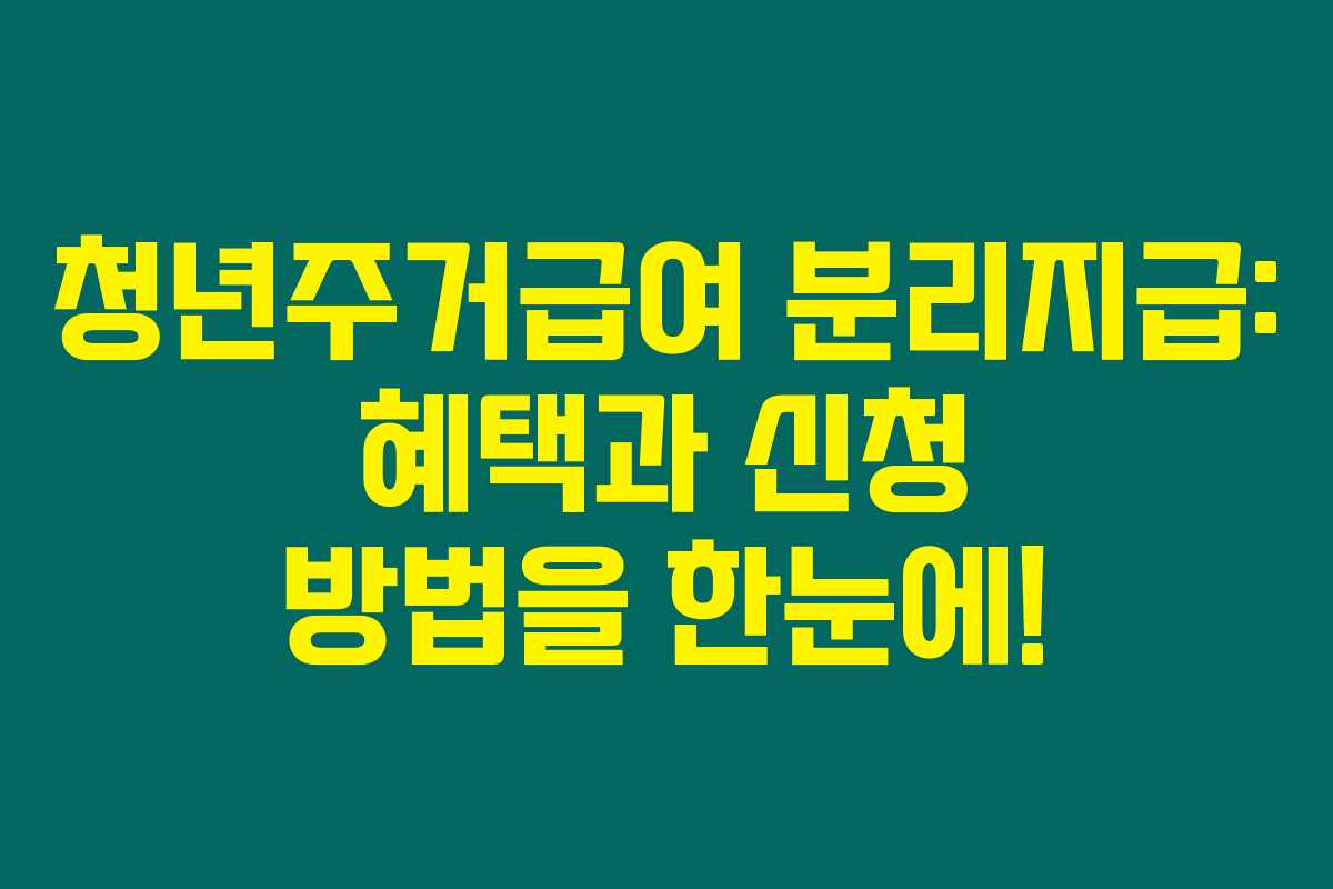 저는 직접 알아본 바로는 청년주거급여 분리지급에 대한 정보가 많은 청년들에게 큰 도움이 될 것 같아요. 청년들이 부모님과 독립해 거주할 때 필요한 주거 지원을 받을 수 있는 방법에 대해 자세히 소개해 드릴게요.