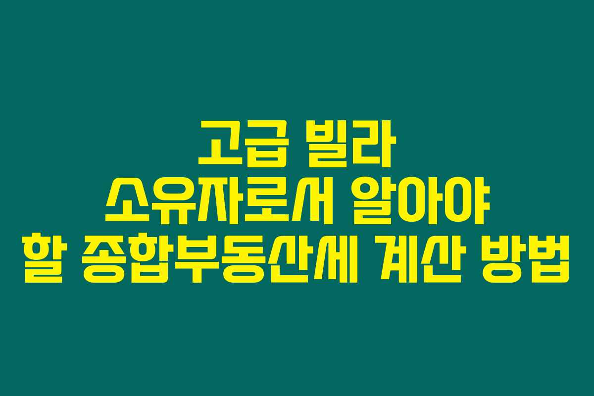제가 직접 경험해본 결과로는, 고급 빌라를 소유하는 것은 많은 사람들에게 꿈일 뿐만 아니라 동시에 종합부동산세로 인해 세금 부담도 만만치 않다는 점을 알게 되었습니다. 고급 자산에 대한 종부세 계산은 복잡할 수 있지만, 올바른 이해와 방법론이 있으면 쉽게 접근할 수 있습니다. 아래를 읽어보시면 종합부동산세의 기본 개념 및 계산 방법을 실제 사례를 통해 효과적으로 이해할 수 있을 거예요.