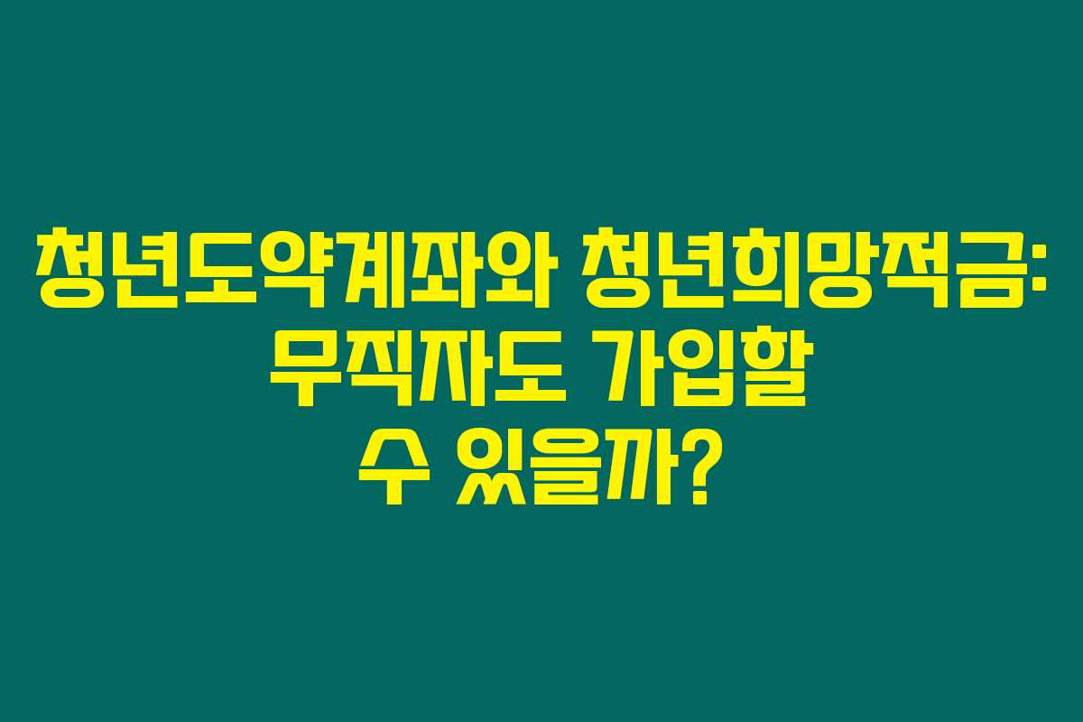 제가 직접 경험해본 결과로는 청년도약계좌와 청년희망적금의 가입 요건이 까다로워 무직인 청년들이 많은 궁금증을 가지고 있다는 것을 느꼈습니다. 청년들의 중장기 자산 형성을 돕기 위해 만들어진 두 가지 정책에 대해 아래를 읽어보시면 자세한 정보와 주의사항을 알 수 있습니다.