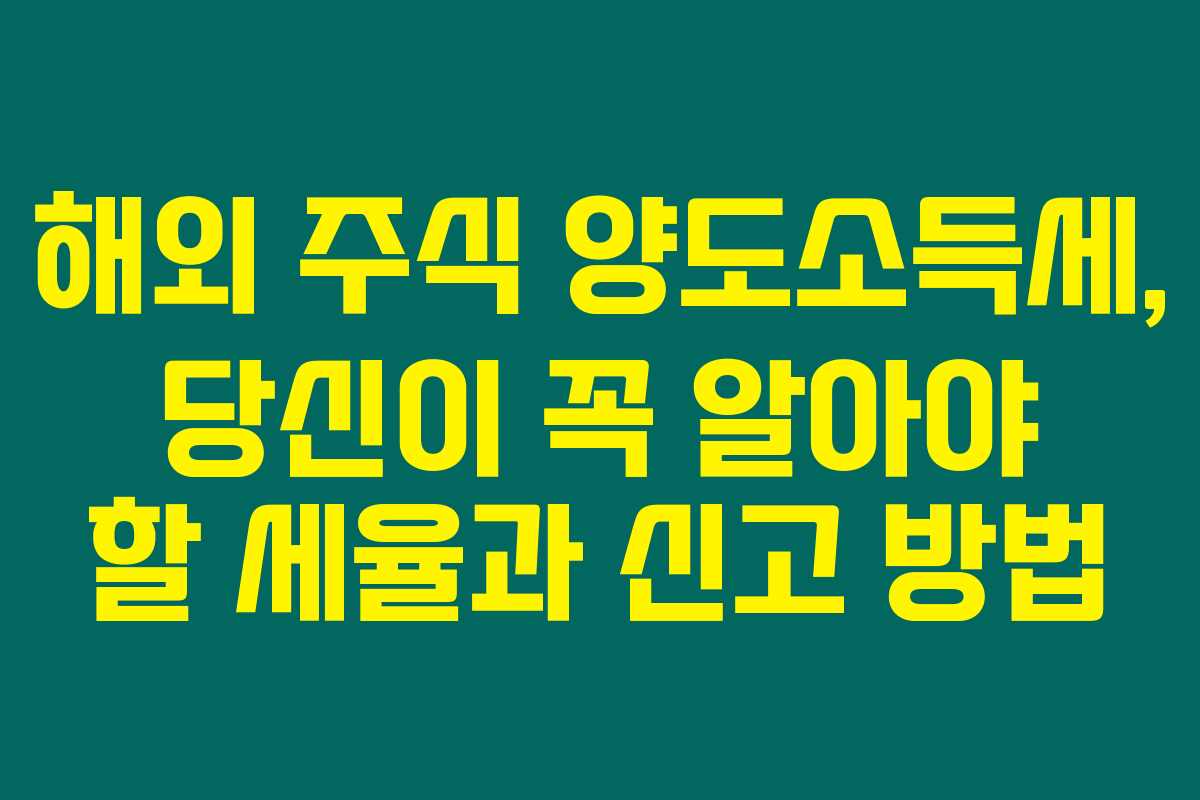 해외 주식은 국내 주식과는 다르게 양도소득세가 적용됩니다. 많은 사람들이 해외 주식으로의 투자에 흥미를 느끼게 되면서, 이에 대한 세금 문제도 중요해져요.