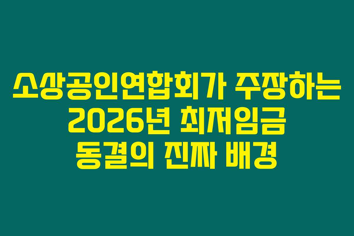 제가 알아본 바로는 소상공인연합회가 2026년 최저임금 동결을 요구하는 이유는 현장의 생존을 위해 절박한 상황이라는 점입니다. 그들은 코로나19로 인한 타격과 경제적 불황 속에서 더 이상 최저임금 인상 요구를 감당할 수 없다는 주장을 하고 있습니다. 아래를 읽어보시면, 최저임금 동결 요구란 단순한 임금 문제가 아닌, 소상공인들의 생존과 직결된 진짜 이야기이라는 것을 알 수 있을 것입니다.