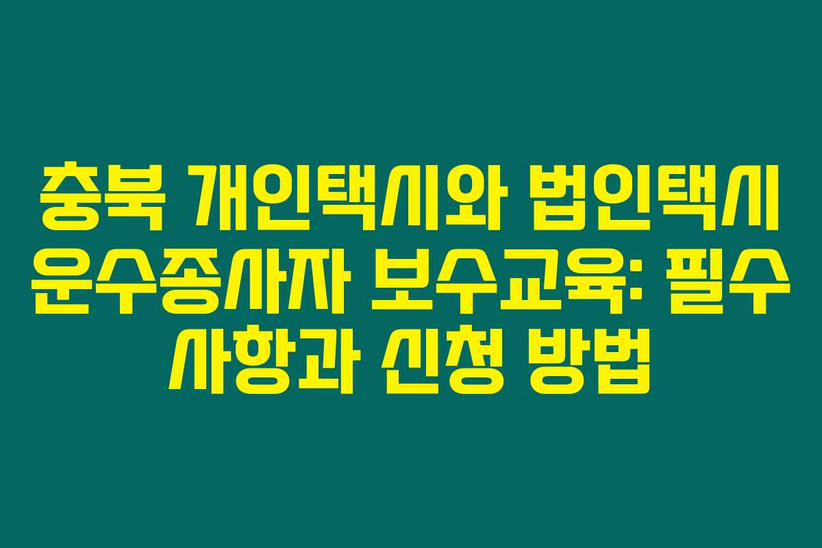 제가 알아본 바로는 충북 지역의 개인택시와 법인택시 운수종사자들이 보수교육을 받는 것이 매우 중요하다고 합니다. 이러한 보수교육은 법적으로 요구되는 사항이며, 운수종사자 개인의 안전과 서비스 품질 향상에 기여합니다. 아래를 읽어보시면 2024년의 보수교육 대상자 및 신청 방법에 대한 유용한 정보를 확인하실 수 있습니다.