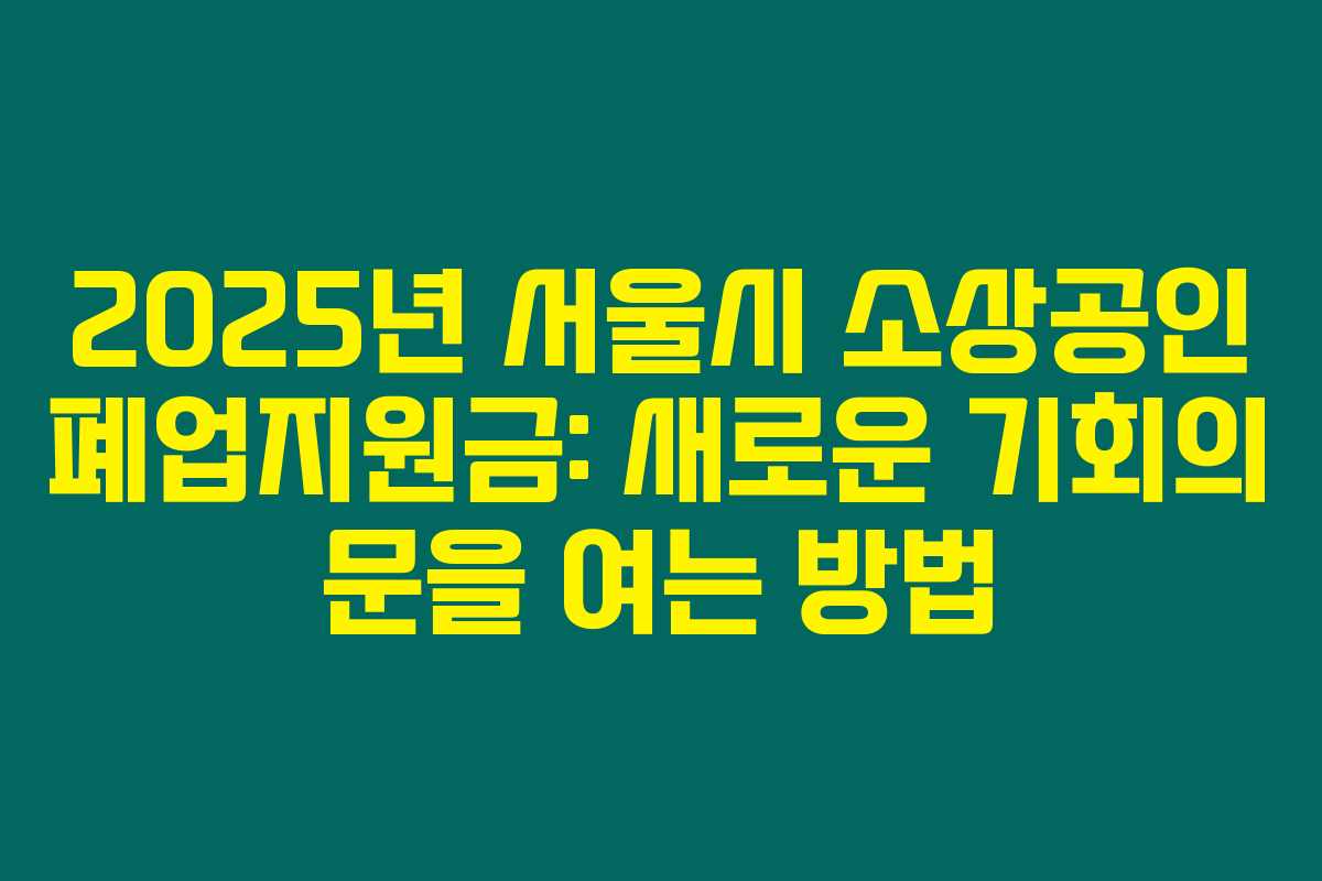 제가 직접 리서치한 바로는, 2025년 서울시에서 시행되는 소상공인 폐업지원금 정책은 힘든 시기를 겪고 있는 소상공인들에게 큰 도움이 될 것입니다. 폐업을 고민하는 소상공인들에게 최대 300만원의 지원금이 지급되며, 이를 통해 재창업이나 취업에 도움이 되는 기회를 제공합니다. 아래를 읽어보시면 이 지원금의 상세한 내용과 신청 방법에 대해 알아보실 수 있습니다.