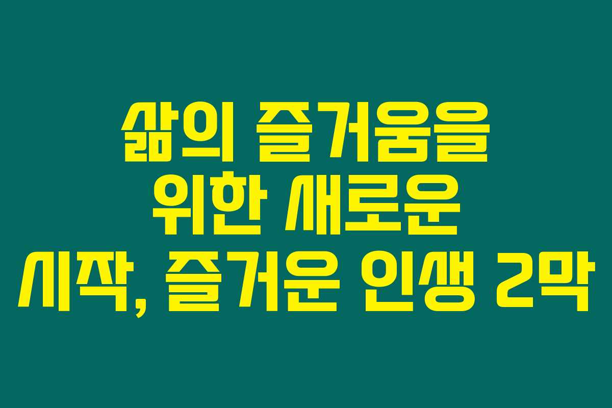 인생의 두 번째 막은 가능성과 모험으로 가득 차 있답니다. 재미있는 취미 활동과 건강한 생활습관, 그리고 지혜로운 재정 관리를 통해 여러분도 더욱 즐거운 인생을 만들어갈 수 있을 거예요. 작은 변화들이 큰 즐거움으로 이어질 수 있으니 도전해 보세요!