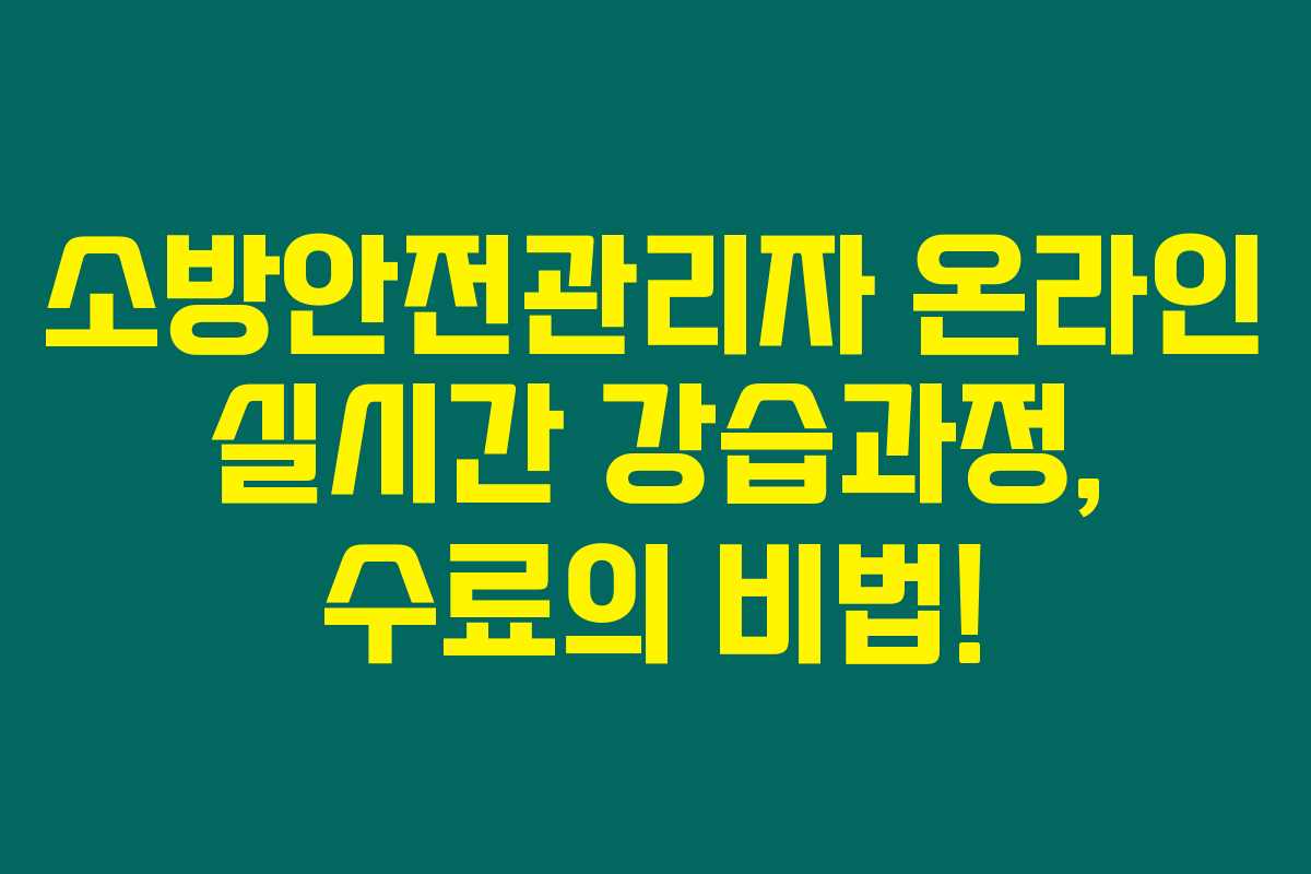 코로나19 상황 속에서도 소방안전관리자 과정은 필수 교육으로 큰 관심을 받고 있습니다. 이번 글에서는 소방안전관리자 온라인 실시간 강습과정을 통해 수료 및 합격의 지름길에 대해 알아보겠습니다. 아래를 읽어보시면 실무능력평가를 효과적으로 준비하고, 최적의 방법으로 수료를 달성하는 방법을 알게 될 것입니다.