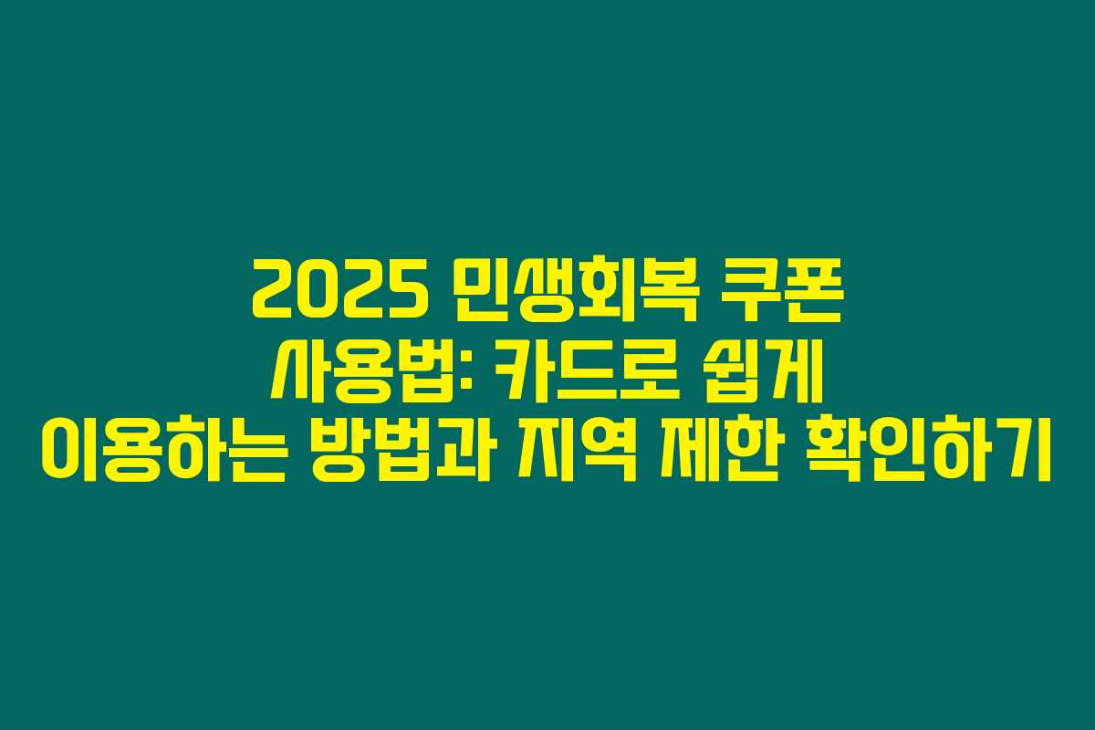 제가 알아본 바로는 2025 민생회복 쿠폰은 국민의 소비 촉진을 위해 매우 유용한 정책으로 자리잡고 있습니다. 신용카드나 체크카드를 통해 쉽게 쿠폰을 받을 수 있어 많은 분들이 사용법에 대해 궁금해하시더군요. 아래를 읽어보시면 카드 포인트의 사용 방법 및 지역 사용 제한 내용에 대해 상세히 안내해드릴게요.
