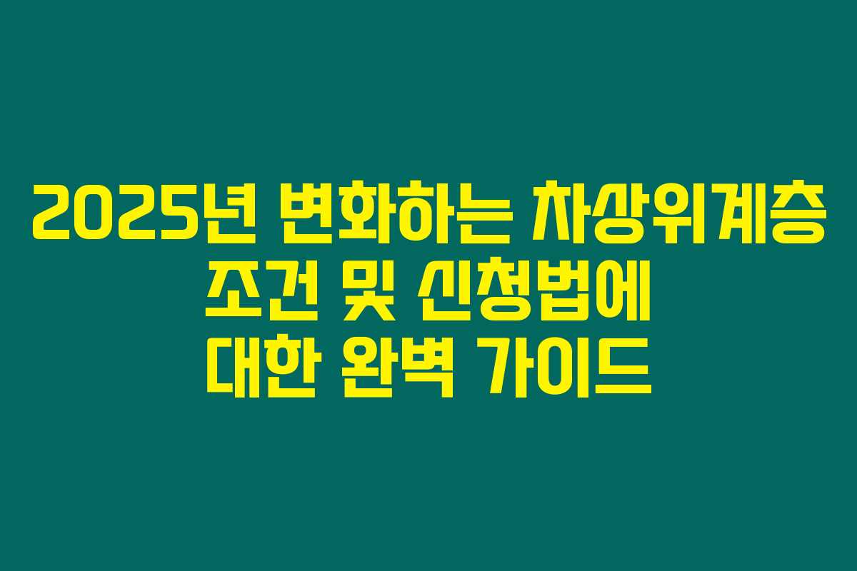 차상위계층의 요건과 신청 방법에 대한 이 정보가 여러분에게 도움이 되길 바랍니다. 혹시 추가 정보가 필요하시거나 궁금하신 점이 있다면 언제든지 질문해 주세요!