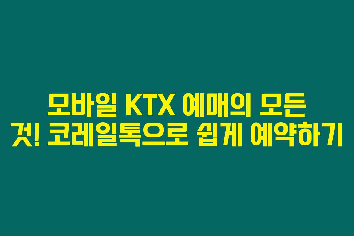 제가 직접 리서치한 바로는 모바일 KTX 예매방법은 이제 더 이상 어려운 절차가 아니에요. 특히, 코레일톡 어플을 이용하면 손쉽고 간편하게 KTX를 예약할 수 있습니다. 아래를 읽어보시면, 제가 경험해본 결과로는 어떤 절차를 통해 빠르고 쉽게 KTX를 예매할 수 있는지에 대한 정보가 가득 담겨 있답니다.