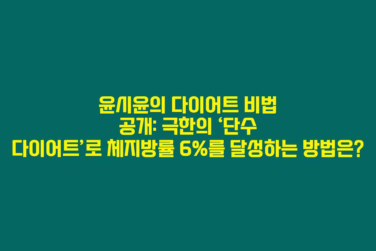 윤시윤의 극한 단수 다이어트를 통해 보여준 자기관리의 사례는 다이어트를 고민하시는 분들에게 큰 영감을 줄 수 있습니다. 그러나 직접 따라할 경우 각별한 주의가 필요하니, 충분한 준비와 상담이 우선이라는 점, 꼭 기억해 주세요. 더 많은 다이어트 방법과 정보를 알고 싶으시다면 지속적으로 블로그를 방문해 주세요!