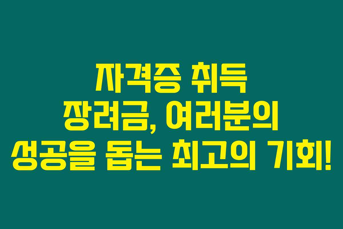 자격증 취득 장려금은 이해하고 활용하면 할수록 여러분의 취업 및 커리어 발전에 큰 도움이 될 수 있어요. 신청 후에는 꼭 유용한 혜택을 누려보세요. 어떤 자격증을 준비하시든, 이 제도를 통해 실질적인 지원을 받아보시길 바랍니다!