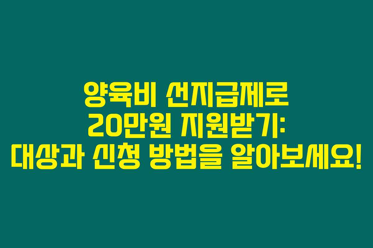 한부모 가정이 안정적으로 아이를 양육할 수 있도록 도와주는 양육비 선지급제가 지원됩니다. 이 제도는 정부가 경제적 어려움에 처한 한부모 가정에 매월 20만원의 양육비를 선지급하는 제도입니다. 아래를 읽어보시면 지원대상과 신청 방법에 대해 자세한 정보를 알 수 있습니다.