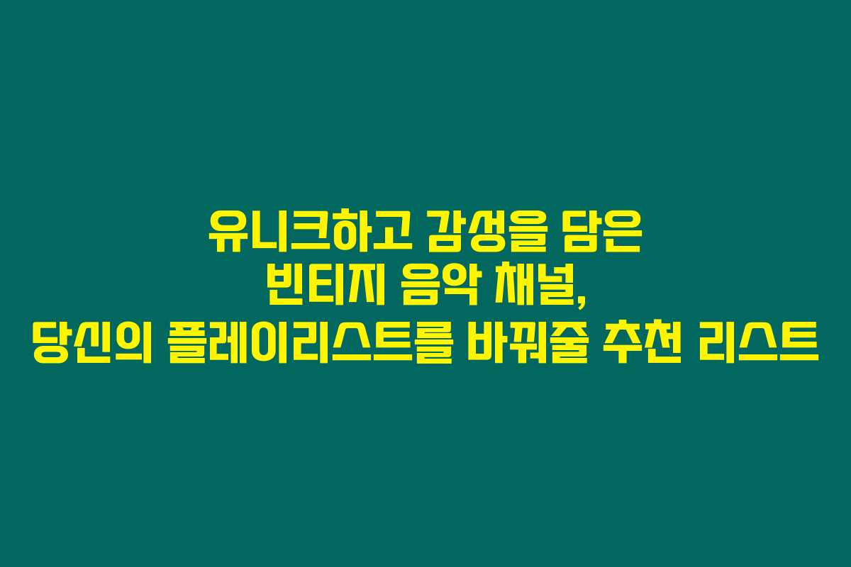 유튜브에는 다양한 음악 채널이 존재하지만, 빈티지한 감성과 유니크한 매력을 지닌 채널들에 대해 알아보면 색다른 음악적 경험을 느낄 수 있어요. 아래를 읽어보시면 감성을 자극하는 음악을 찾는 데 유용한 몇 가지 채널을 소개할게요.