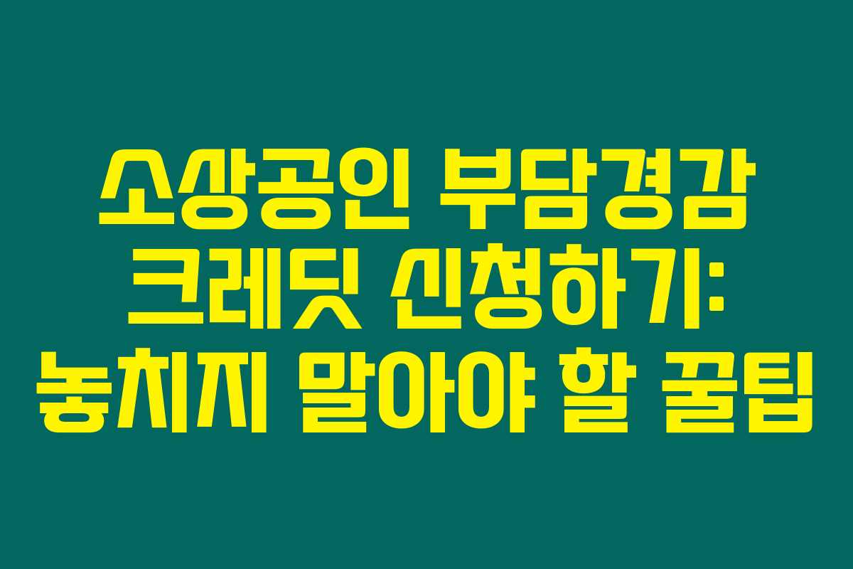 소상공인 부담경감 크레딧은 정말로 소상공인들에게 도움이 될 좋은 기회입니다. 신청을 통해 고정비용을 절감하고, 사업 운영에 조금이나마 더 여유를 가져보세요. 여러분도 저 같은 혜택을 통해, 더 나은 비즈니스 환경을 만들어가길 바랍니다. 추가 정보가 필요하시면 언제든지 여쭤보세요!