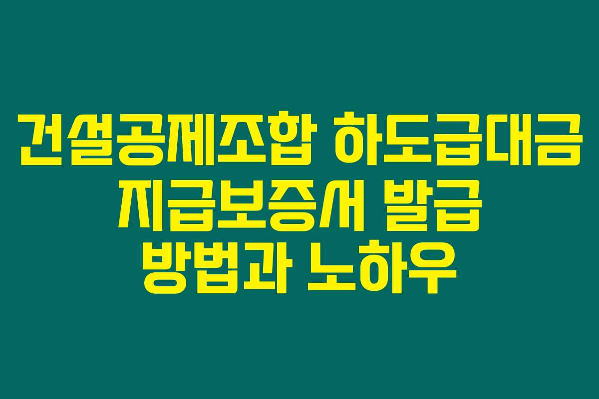 하도급대금 지급 보증서는 원도급사가 발급해야 하며, 필요한 서류를 준비한 후 건설공제조합에 신청하여 발급받습니다.