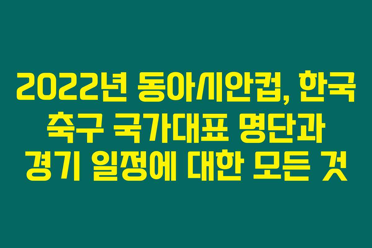 7월에 개최된 2022년 동아시안컵에서 한국 축구 국가대표팀의 명단과 경기 일정에 대한 흥미로운 사실들을 알아보려 하시나요? 비록 대회가 끝나긴 했지만, 이번 대회가 갖는 의미와 선수들의 활약은 여전히 우리의 기억에 남아 있을 것입니다. 아래를 읽어보시면, 동아시안컵에서의 한국 국가대표팀의 여정과 명단, 그리고 각각의 경기 일정에 대한 중요한 정보를 얻으실 수 있습니다.