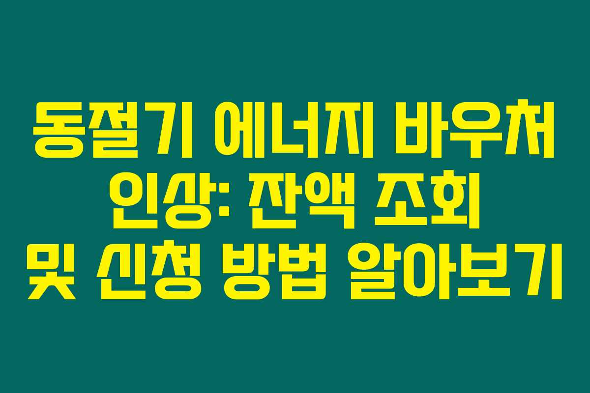 이번 동절기 에너지 바우처 지원금이 2배로 인상되었습니다. 취약계층에게 필요한 에너지를 지원하는 이 제도가 얼마나 중요한지 많은 분들이 느끼고 있을 텐데요, 아래를 읽어보시면 에너지 바우처의 잔액 조회 방법, 신청 대상 및 구체적인 신청 방법에 대해 자세히 안내해 드리겠습니다.
