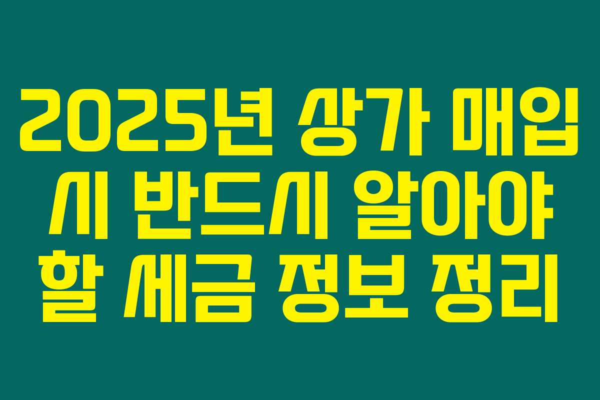 상가 매입 시 필수 세금 정보는 수익성을 크게 좌우합니다. 올바른 정보와 계획으로 성공적인 상가 투자를 하시길 바랍니다.