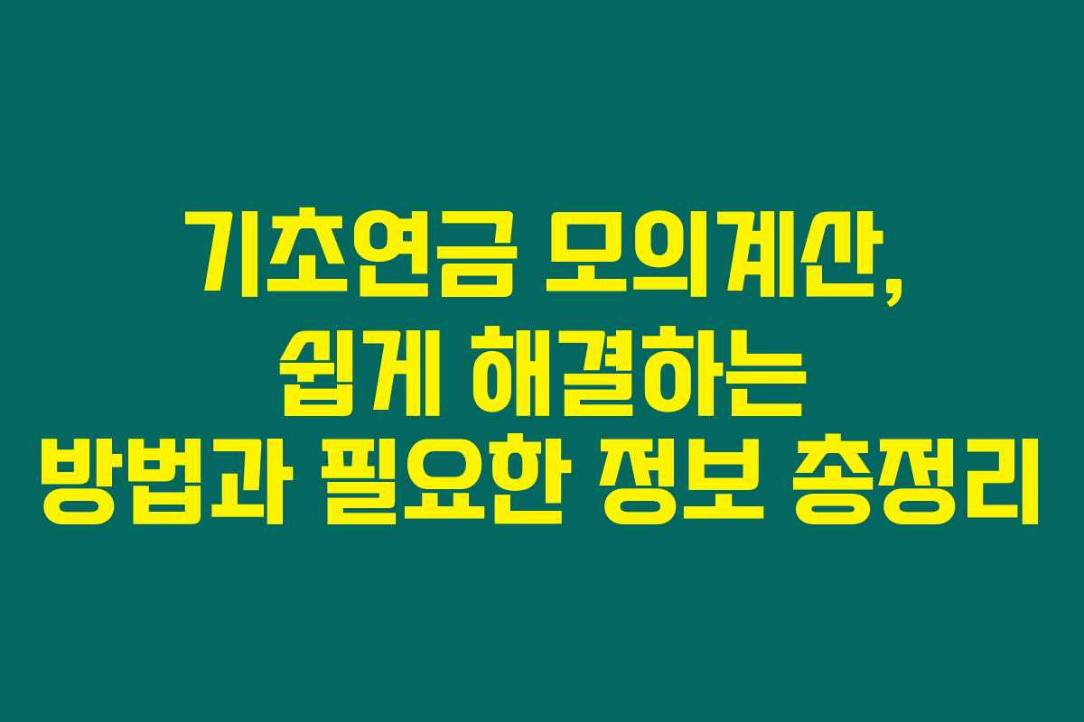 기초연금은 많은 분들에게 매우 중요한 재정적인 지원이 되어 주고 있어요. 만약 당신이 기초연금을 받을 수 있는지 궁금하다면? 아래를 읽어보시면 정말 간단하게 자신의 상황을 알아볼 수 있어요. 모의계산을 통해 기초연금의 조건을 쉽게 확인해보세요!