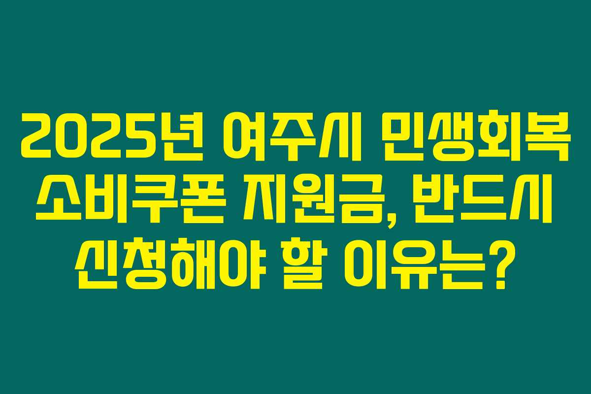 2025년 여주시에서 지원하는 민생회복 소비쿠폰이 궁금한가요? 본 기사에서는 여주시가 제공하는 소비쿠폰의 지급 방법, 금액, 신청 주의사항 및 상위 10% 배제 기준과 같은 핵심 정보를 상세히 설명해드릴게요. 소비쿠폰으로 경제적인 어려움을 극복하고 싶다면 지금 바로 확인해보세요.