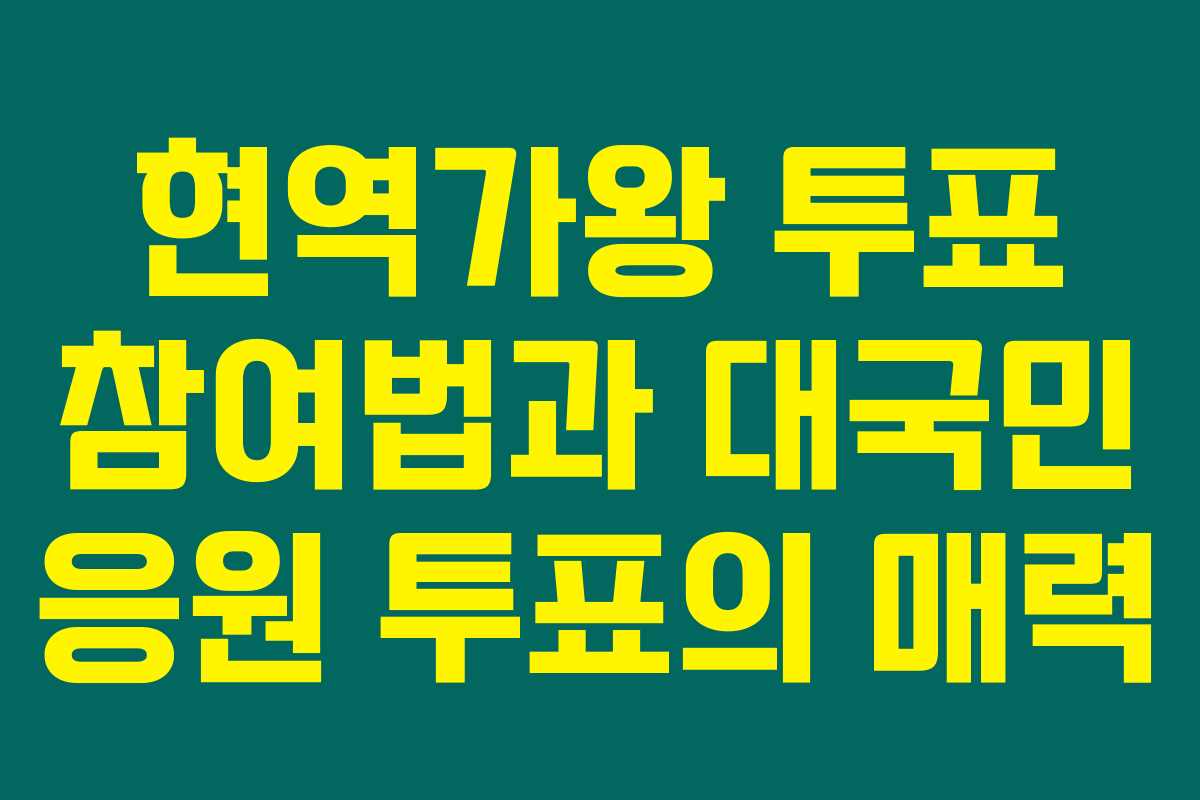 이번 포스트에서 현역가왕 투표 참여 방법과 대국민 응원 투표의 중요성을 알아봐요! 여러분의 응원이 힘이 됩니다. 투표로 응원하고, 좋아하는 가수를 직접 만나는 기회도 놓치지 마세요!