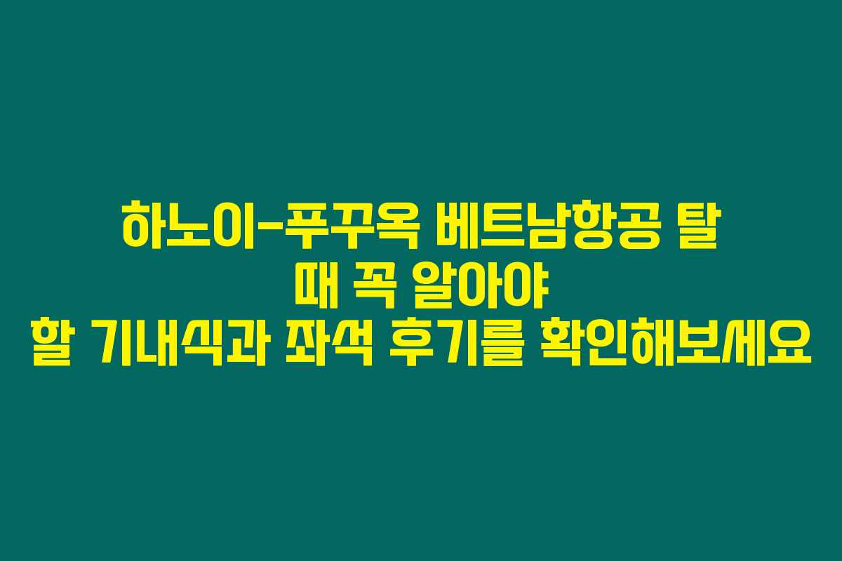 하노이에서 푸꾸옥으로 떠나는 여행을 고민 중이라면 잠시 기다려주세요. 베트남항공의 국내선 기내식과 좌석, 수하물, 가격 정보를 꼭 확인해 보셔야겠어요. 특히 기내에서의 경험은 여행의 일부라 이 정보가 큰 도움이 될 것 같아요.