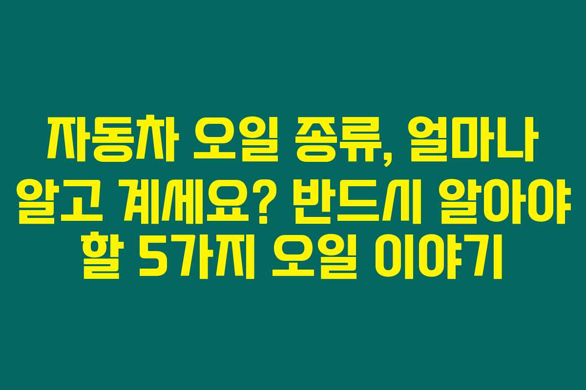자동차 오일은 자동차의 생명선을 유지하는 데 꼭 필요한 요소입니다. 하지만 자동차 오일의 종류에 대해 제대로 알고 있지 않는 분들이 많아요. 만약 자동차 오일의 종류에 대한 지식이 부족하다면 귀찮은 고장이나 비싼 수리비를 잃게 될 수 있답니다. 그렇다면 자동차 오일의 종류는 무엇이 있을까요? 특히 엔진, 미션, 브레이크, 스티어링, 디퍼런셜 오일에 대해 알아보세요. 아래를 읽어보시면 자동차 오일에 대한 깊은 이해를 통해 안전하고 쾌적한 주행을 경험할 수 있을 거예요.