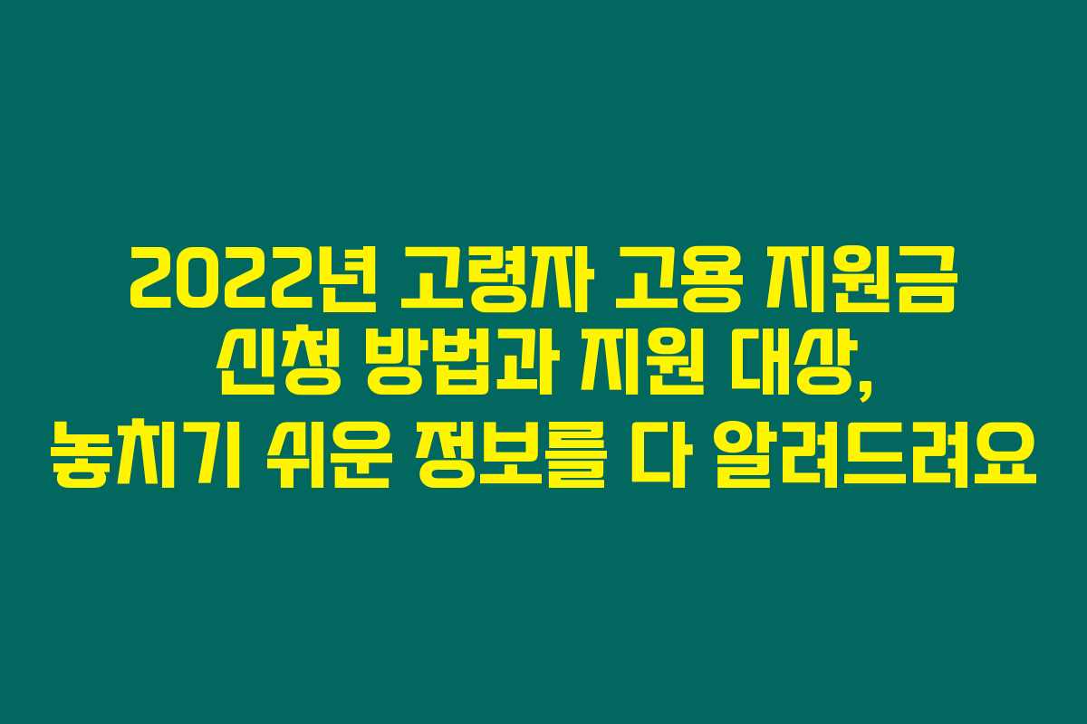 고령자 고용 지원금을 신청하려고 하신다면 아래의 내용을 꼭 확인해보세요. 2022년에 새롭게 신설된 이 제도는 60세 이상의 근로자를 고용하는 중소기업을 위한 지원 정책이에요. 왜냐하면 한국은 점점 고령화 사회로 접어들고 있어서 고령자들이 일할 수 있는 기회를 제공하기 위해 이 제도가 시행된 것이랍니다. 다른 분들이 잘 모르시는 점도 많으니 제가 미리 알아보았어요.