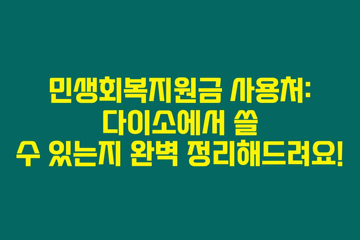 다이소에서 민생회복지원금을 잘 활용하려면 사용 가능한 매장인지 꼭 확인해야 해요. 최대 52만원까지 사용할 수 있다니 경제적인 혜택 챙겨보세요. 당신의 쇼핑이 더 스마트해질 거예요! 궁금한 점 있으면 언제든지 문의해 주세요~~