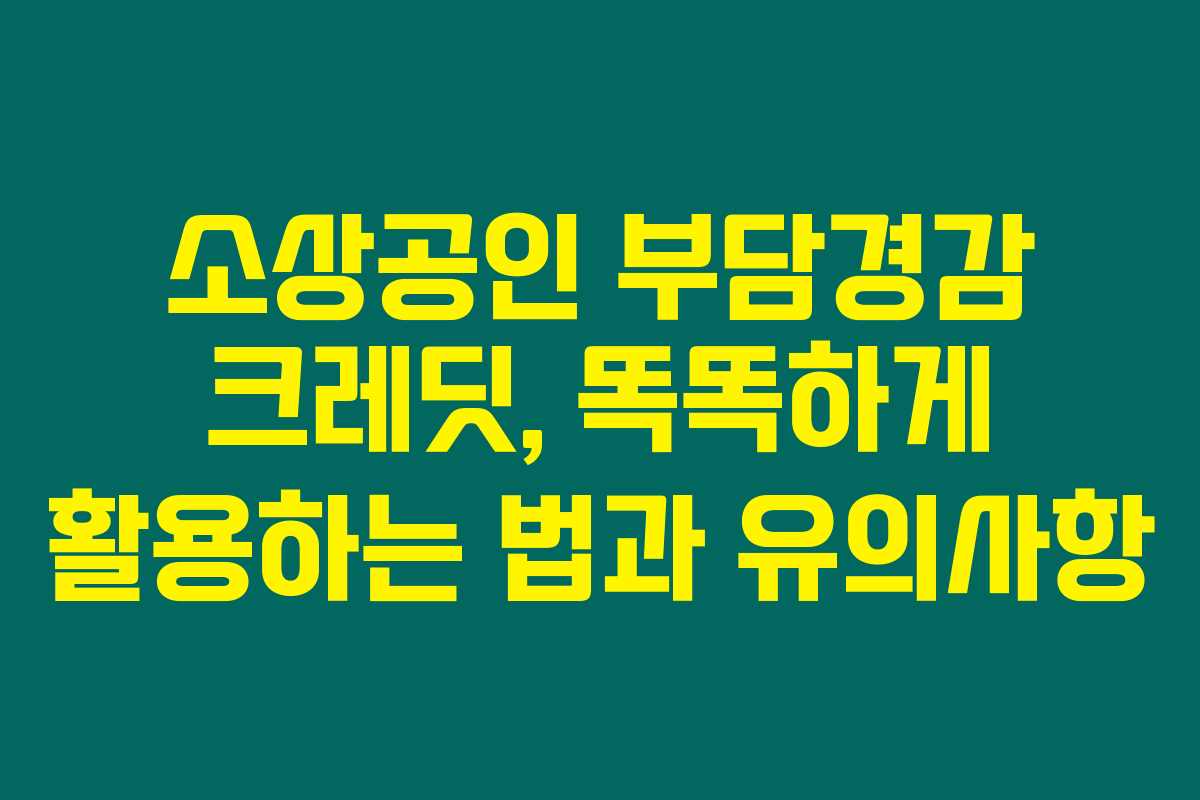 부담경감 크레딧은 소상공인 여러분에게 큰 도움이 될 수 있어요. 기회를 잘 아는 것이 중요하니 놓치지 마시고, 필요한 지원 계속 찾아보세요. 힘든 경영환경 속에서 여러분의 성공을 친구처럼 응원할게요. 더 많은 정보가 필요하다면 언제든지 찾아와 주세요!