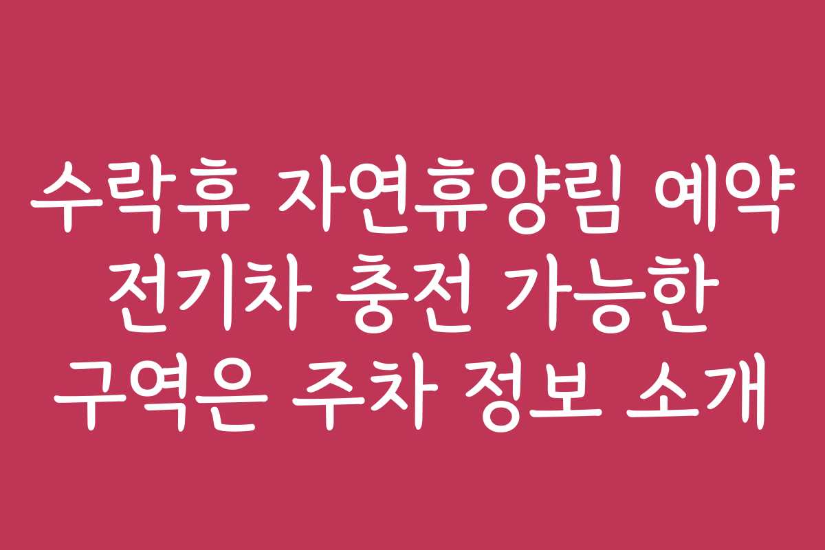 이 문서는 전기차를 이용하는 사람들이 수락휴 자연휴양림 예약 시 전기차 충전 구역과 주차 정보를 이해하는 데 필요한 상세하고 실용적인 정보를 제공하고 있습니다. 검색 최적화 및 가독성을 위한 구성 요소를 포함하여 작성되었습니다.