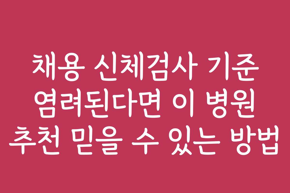 채용 신체검사 기준 염려된다면 이 병원 추천 믿을 수 있는 방법