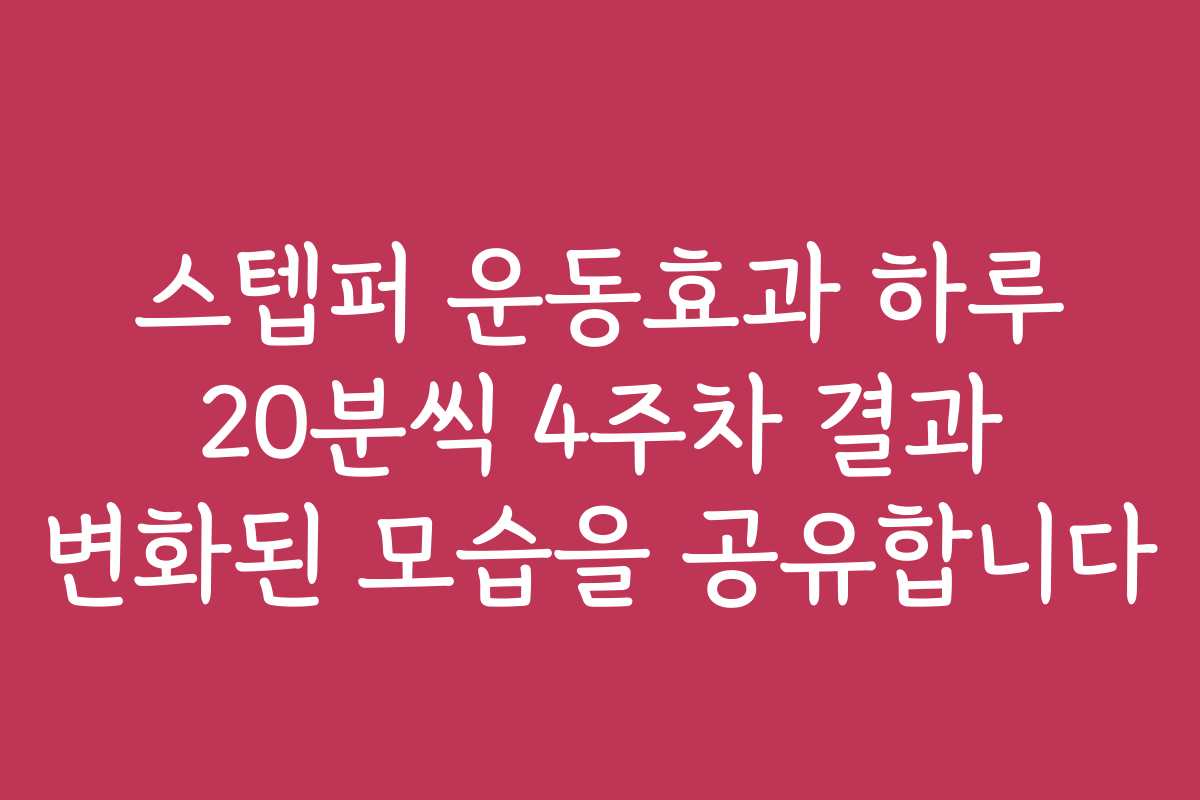 스텝퍼를 이용한 운동효과를 엿볼 수 있는 기회를 가져보세요! 하루 20분씩 4주 동안 운동한 결과, 놀라운 변화가 있었습니다. 많은 사람들이 스텝퍼를 활용하고 있지만 그 효능에 대한 의구심이 커질 때마다 이 글을 통해 진솔한 경험을 공유하고자 합니다.