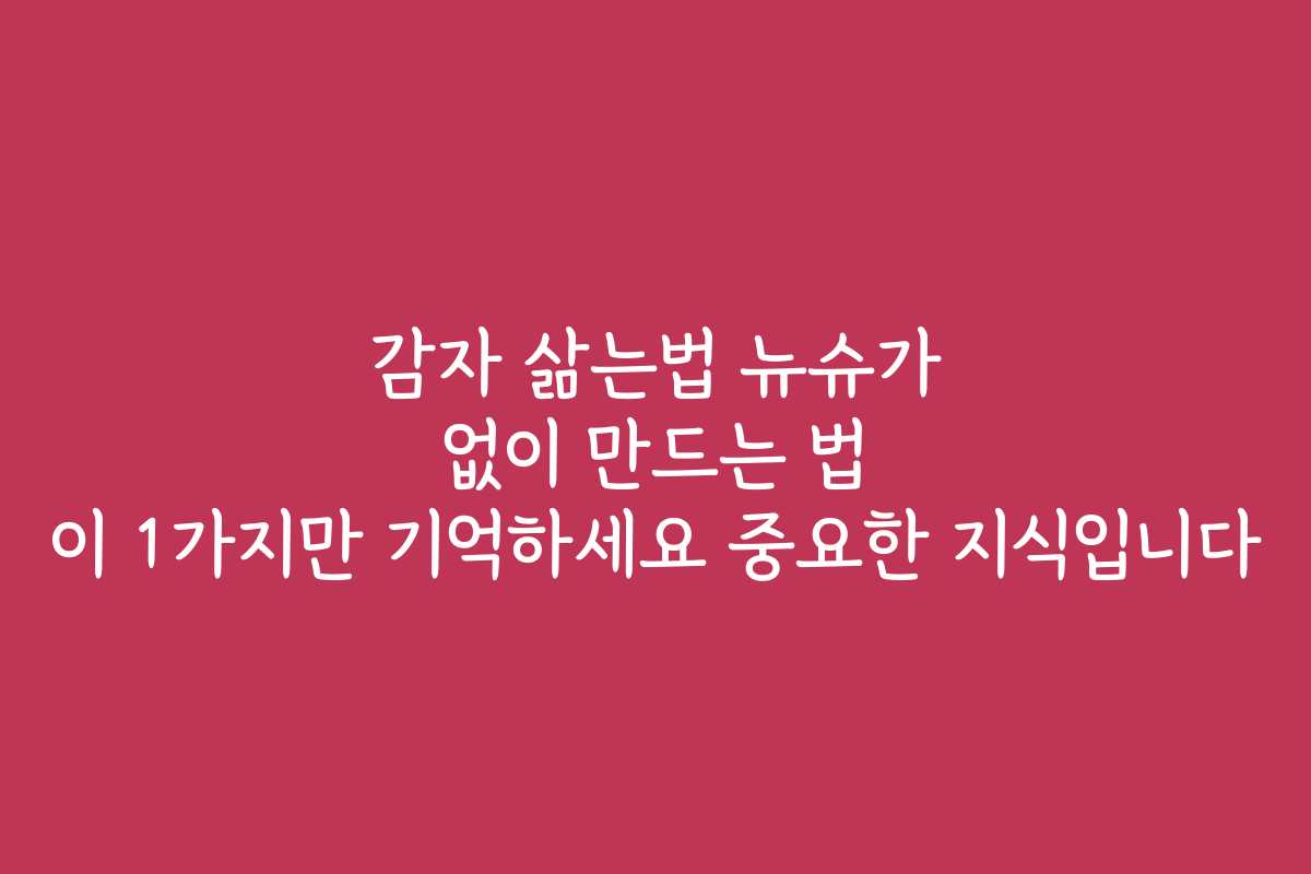 감자 삶는법 뉴슈가 없이 만드는 법 이 1가지만 기억하세요 중요한 지식입니다