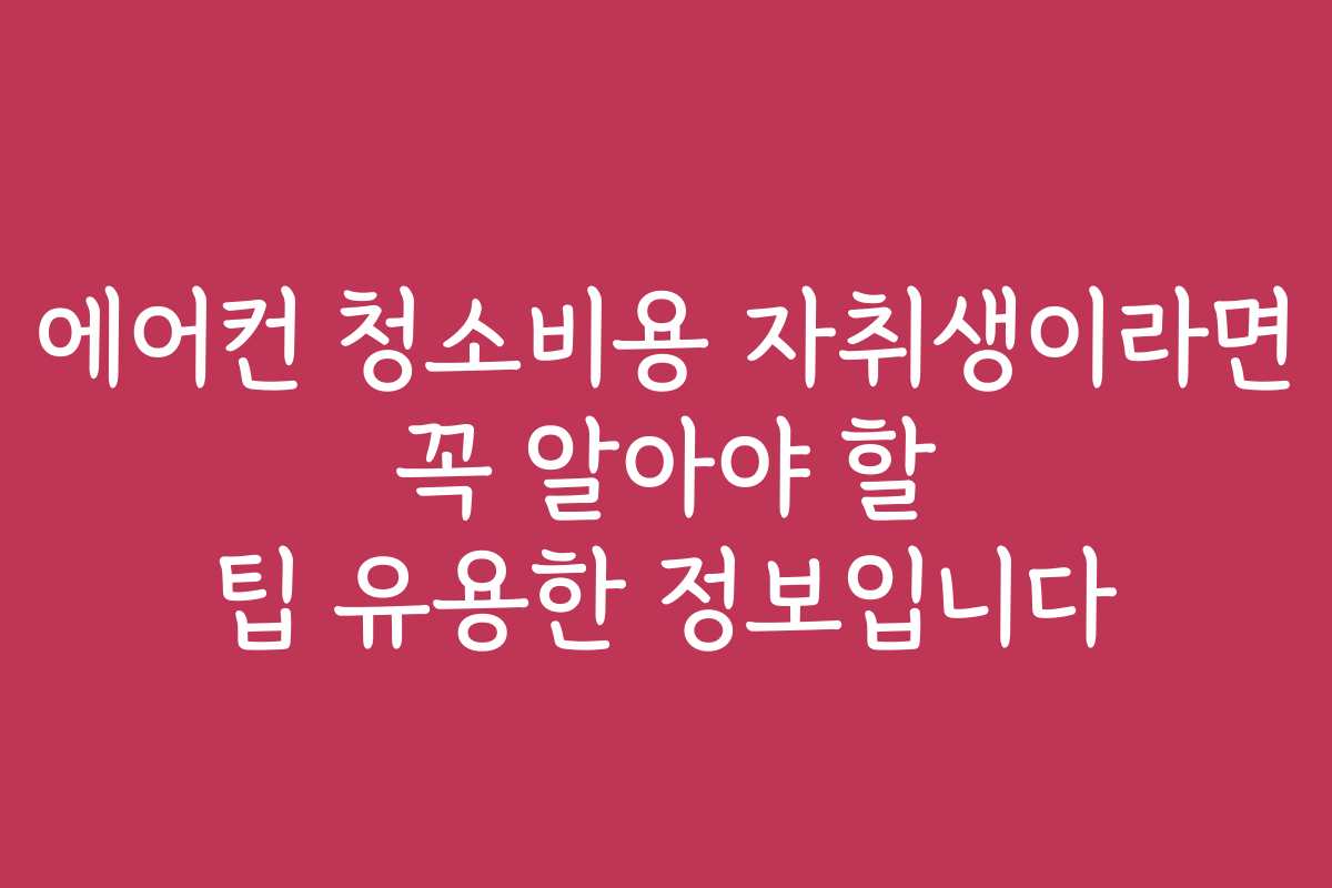 에어컨 청소비용이 고민이신가요? 많은 자취생들이 깨끗한 환경을 유지하기 위해 에어컨 청소를 고민하고 있습니다. 이 글에서 에어컨 청소비용 자취생이라면 꼭 알아야 할 팁 유용한 정보입니다에 대한 실질적인 해결책을 제시하겠습니다.